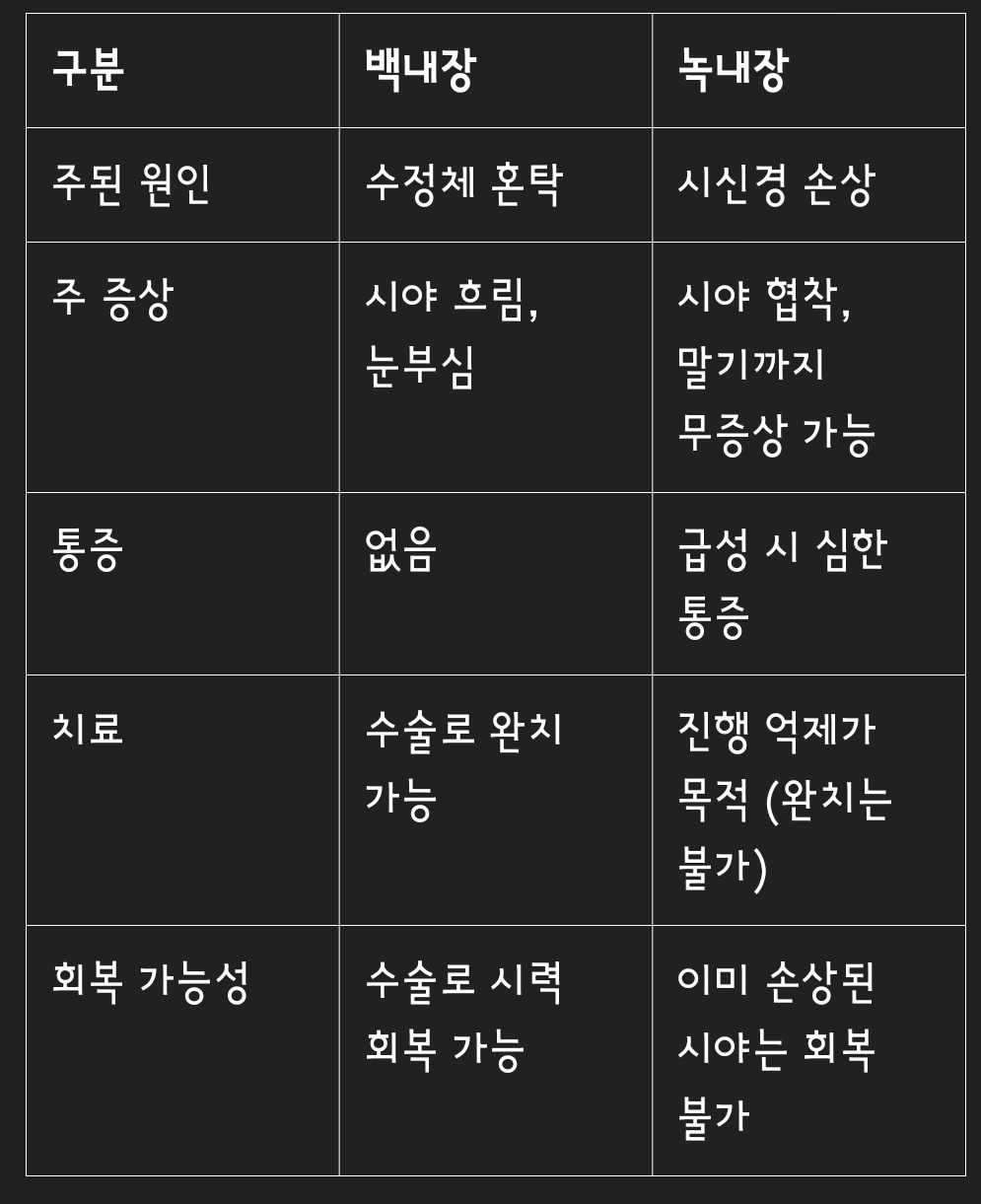 3. 백내장과 녹내장의 주요 차이점