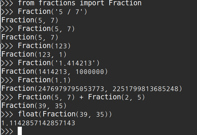 Fraction('5 / 7') → Fraction(5, 7)